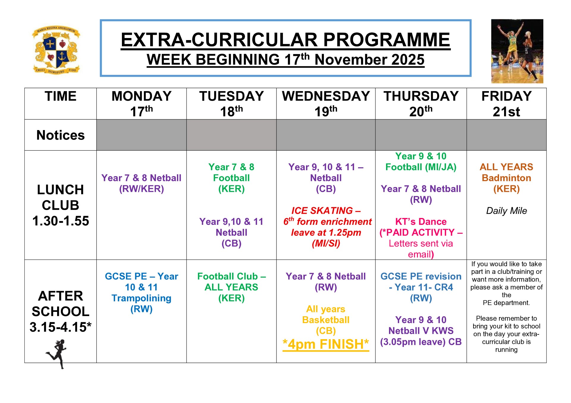 PE Clubs & Fixtures