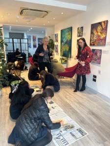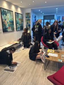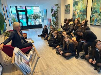 On Friday Yr11 art students visited an exhibition of paintings by the artist Pip Mole at the Collective Gallery on Holywell Hill. Pip kindly gave a talk about her former career as a GMTV presenter and journalist and then went on to explain the processes involved in creating her abstract expressionist paintings. Our students asked many intelligent and perceptive questions and came away enthused and inspired to use her techniques in their own work. They produced some outstanding oil pastel studies based on Pip's paintings which will form part of their GCSE coursework. Miss Aherne and Ms Jaques were extremely proud of the exemplary behaviour demonstrated by our Yr11 students throughout the experience.