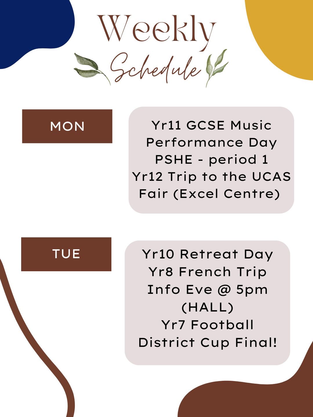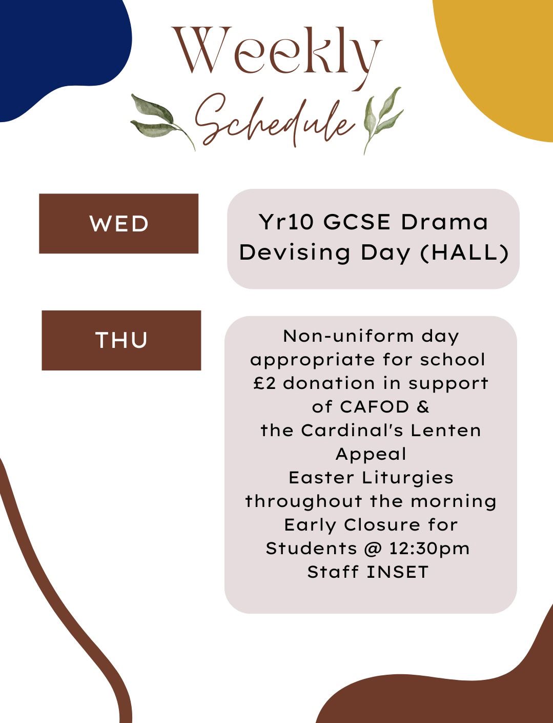 Weekly Schedule - w/c 23 March 2026